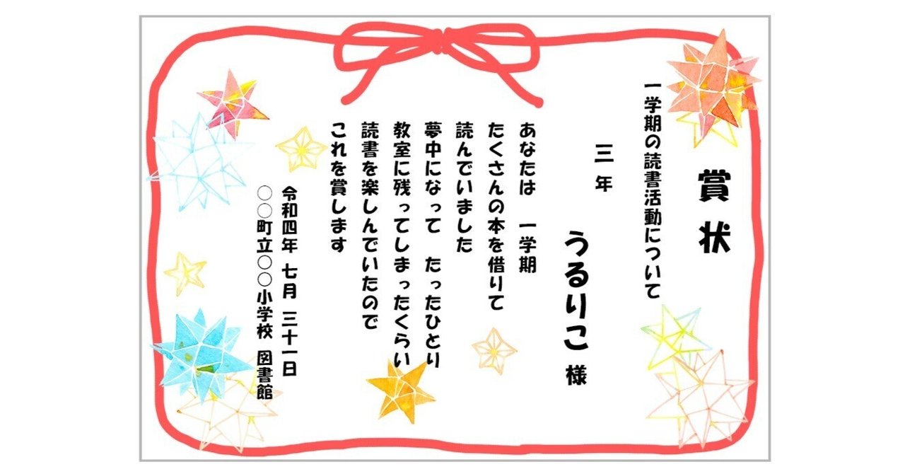 図書館では、学期の終わりごとなどに、賞状を出すことがあります。
