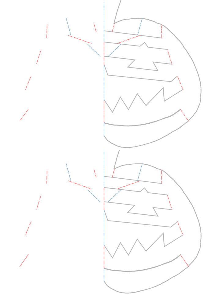 切る時の線の角度、折る時の角度が重要な感じになっています。